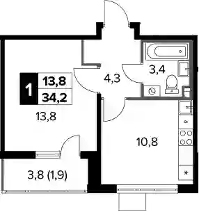 11 906 700 ₽1-к.квартира, 34.1 м², 8 эт.