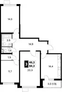 18 807 330 ₽3-к.квартира, 82.1 м², 20 эт.