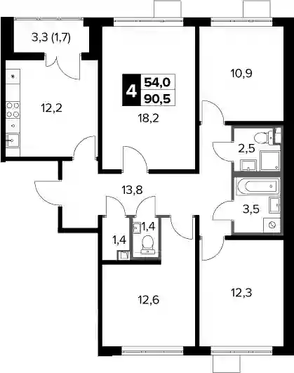 21 394 200 ₽4-к.квартира, 88.8 м², 10 эт.