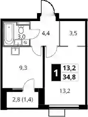 6 758 438 ₽1-к.квартира, 34.3 м², 9 эт.