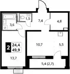 9 544 704 ₽2-к.квартира, 46.9 м², 2 эт.
