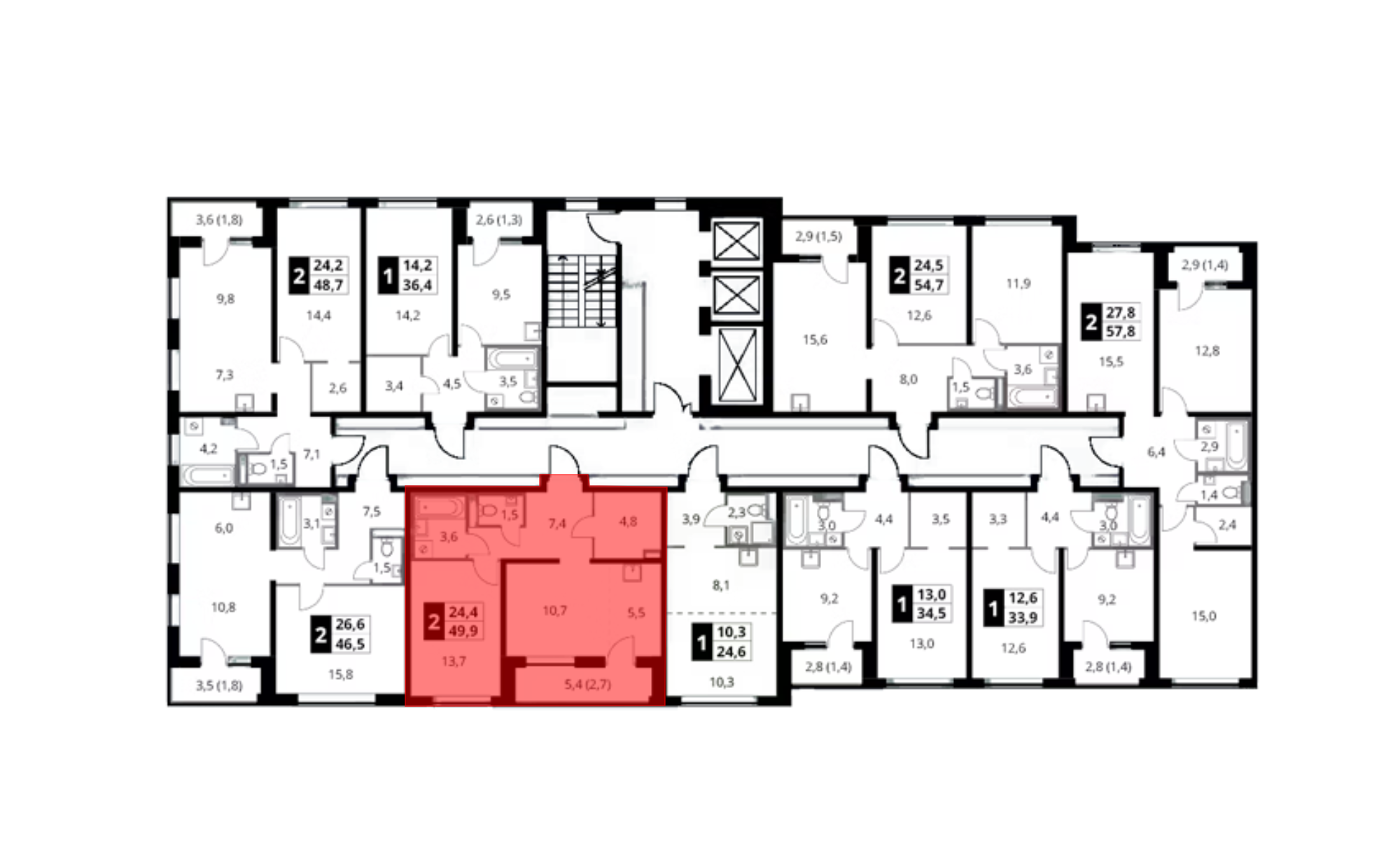 13 248 042 ₽2-к.квартира, 49.8 м², 17 эт.