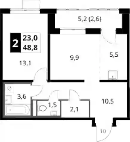 10 231 650 ₽2-к.квартира, 48.1 м², 21 эт.