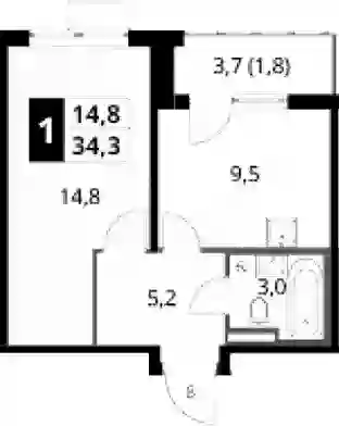 6 758 438 ₽1-к.квартира, 34.3 м², 9 эт.