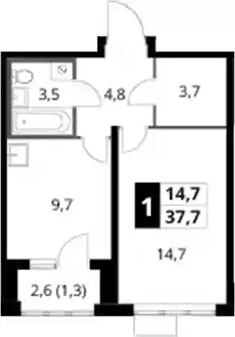 9 875 654 ₽1-к.квартира, 38.4 м², 9 эт.
