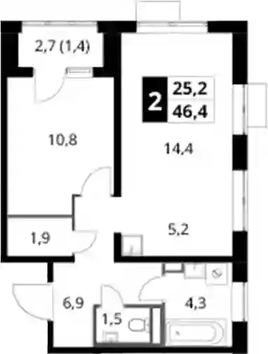 11 259 440 ₽2-к.квартира, 46.9 м², 2 эт.