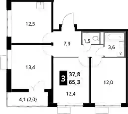 15 381 374 ₽3-к.квартира, 67.9 м², 10 эт.