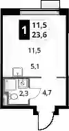 5 756 523 ₽Студия, 24.6 м², 2 эт.