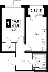 1-к.квартира, 40.6 м², 13 эт. в ЖК 1-й Донской Корпус 4.1
