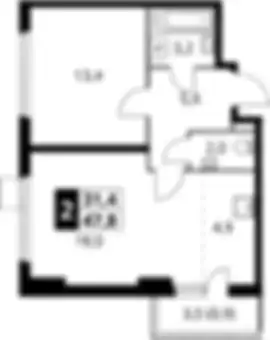 9 544 704 ₽2-к.квартира, 46.9 м², 2 эт.