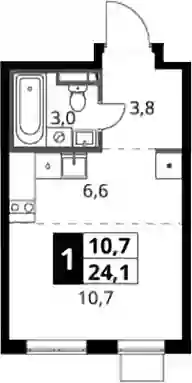 6 084 606 ₽Студия, 24.2 м², 15 эт.