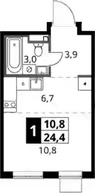 6 084 606 ₽Студия, 24.2 м², 15 эт.