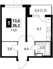 1-к.квартира, 34.5 м², 12 эт. в ЖК 1-й Донской Корпус 4