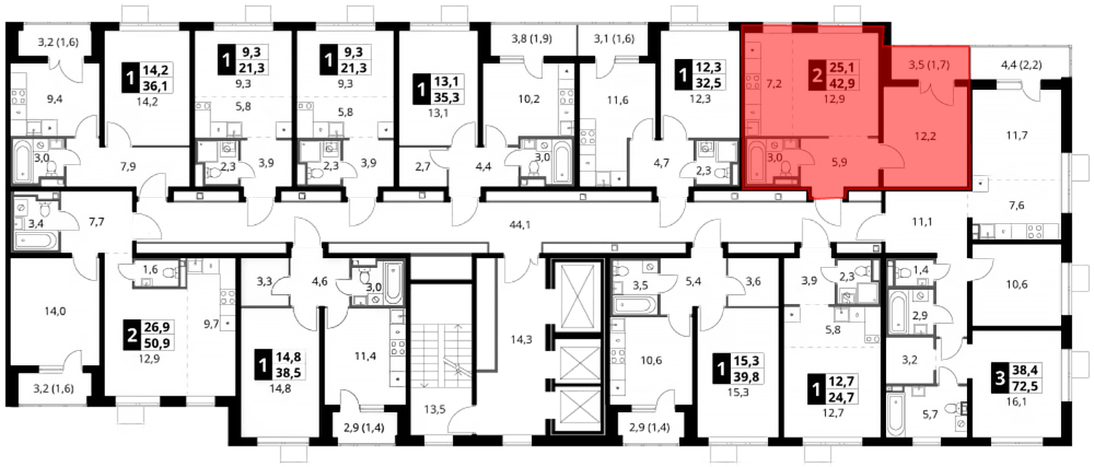 12 799 980 ₽2-к.квартира, 45.3 м², 3 эт.