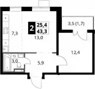 12 619 524 ₽2-к.квартира, 43.3 м², 19 эт.