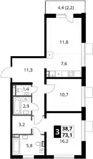 16 230 608 ₽3-к.квартира, 74.4 м², 16 эт.
