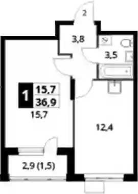 9 280 000 ₽1-к.квартира, 36.8 м², 14 эт.