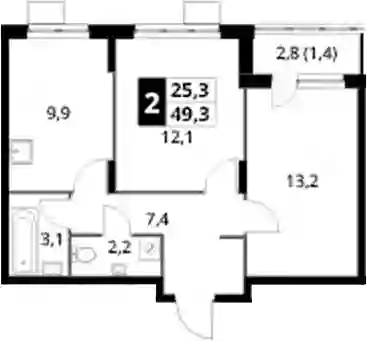 11 920 128 ₽2-к.квартира, 51.1 м², 9 эт.
