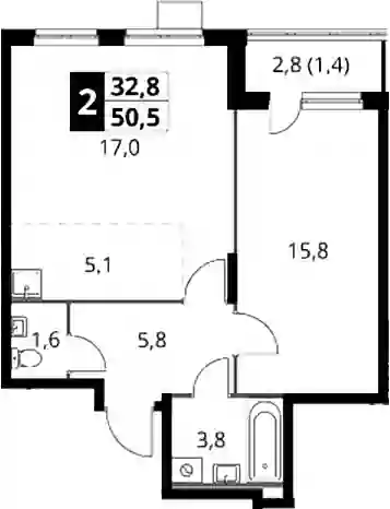 15 302 840 ₽2-к.квартира, 56.5 м², 14 эт.
