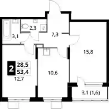 13 645 100 ₽2-к.квартира, 49.1 м², 15 эт.