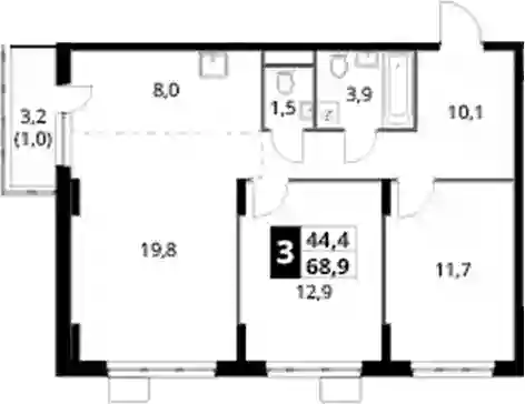 14 603 987 ₽3-к.квартира, 68.7 м², 20 эт.
