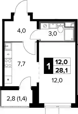 7 267 388 ₽1-к.квартира, 28.7 м², 11 эт.