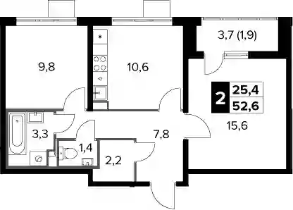 11 259 440 ₽2-к.квартира, 46.9 м², 2 эт.