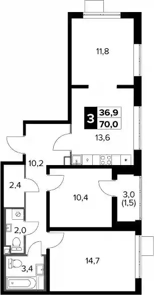 13 916 133 ₽3-к.квартира, 67.8 м², 7 эт.