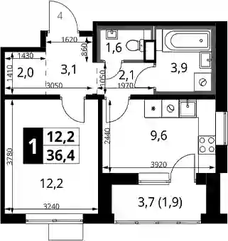 6 180 177 ₽1-к.квартира, 36.7 м², 1 эт.