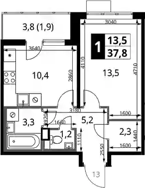 1-к.квартира, 35.9 м², 13 эт. в ЖК 1-й Химкинский Корпус 1.2