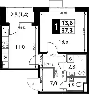 6 281 216 ₽1-к.квартира, 37.3 м², 1 эт.