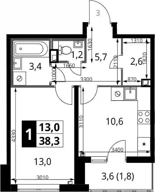 6 550 595 ₽1-к.квартира, 36.9 м², 3 эт.