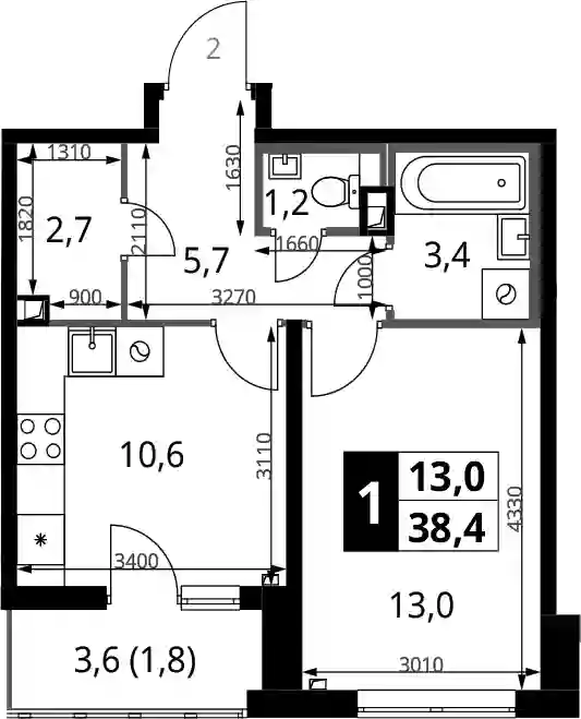 6 544 630 ₽1-к.квартира, 37.2 м², 2 эт.