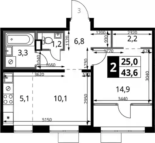 2-к.квартира, 43.6 м², 8 эт. в ЖК 1-й Химкинский Корпус 1.2