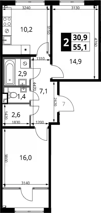 9 499 182 ₽2-к.квартира, 51 м², 2 эт.
