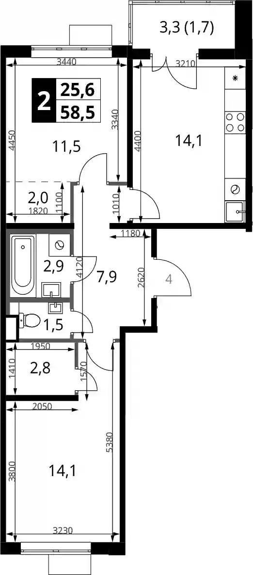 2-к.квартира, 56.8 м², 13 эт. в ЖК 1-й Химкинский Корпус 1.2