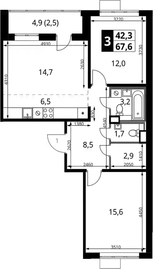 3-к.квартира, 65.1 м², 3 эт. в ЖК 1-й Химкинский Корпус 1.2