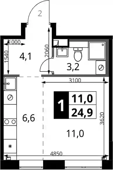 6 213 960 ₽Студия, 24.6 м², 2 эт.