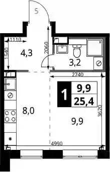 6 355 610 ₽Студия, 25.8 м², 5 эт.