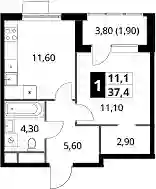 6 281 216 ₽1-к.квартира, 37.3 м², 1 эт.