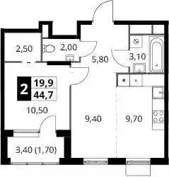 10 212 400 ₽2-к.квартира, 46.4 м², 9 эт.