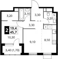 2-к.квартира, 44 м², 5 эт. в ЖК 1-й Химкинский Корпус 1.3