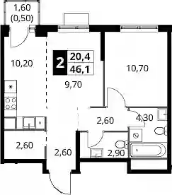10 212 400 ₽2-к.квартира, 46.4 м², 9 эт.