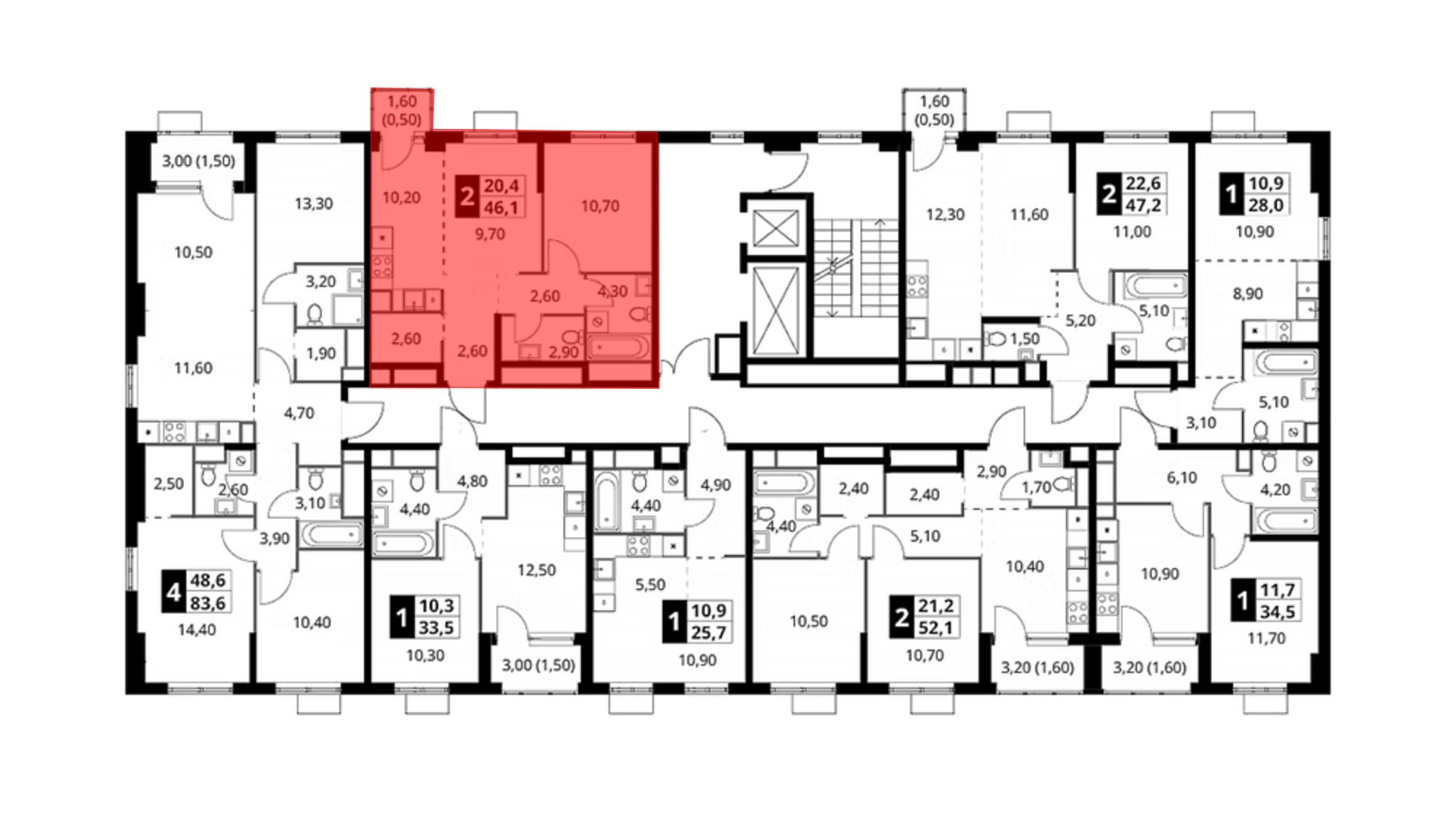 10 212 400 ₽2-к.квартира, 46.4 м², 9 эт.