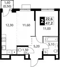 9 984 000 ₽2-к.квартира, 46 м², 2 эт.
