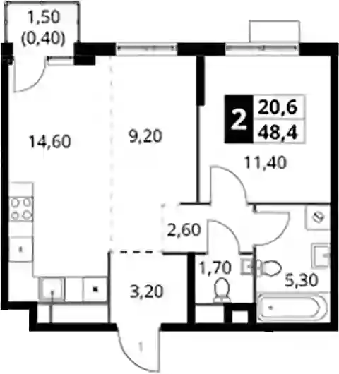 2-к.квартира, 48 м², 9 эт. в ЖК 1-й Химкинский Корпус 1.3