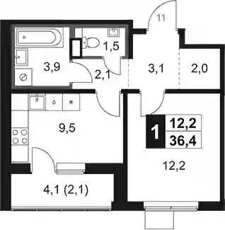 6 539 105 ₽1-к.квартира, 36.9 м², 3 эт.