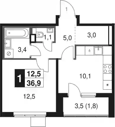 9 034 809 ₽1-к.квартира, 36.9 м², 10 эт.
