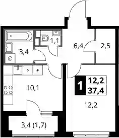6 682 861 ₽1-к.квартира, 37.3 м², 6 эт.