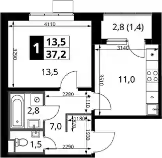 1-к.квартира, 35.8 м², 12 эт. в ЖК 1-й Химкинский Корпус 1.4